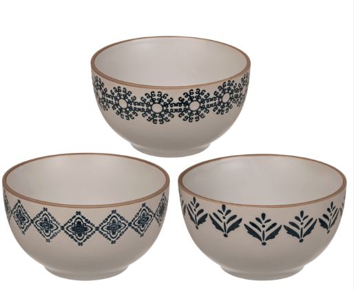 Bowl Stoneware White-Blue Coloured Decor 13.8X7.1Cm#101978