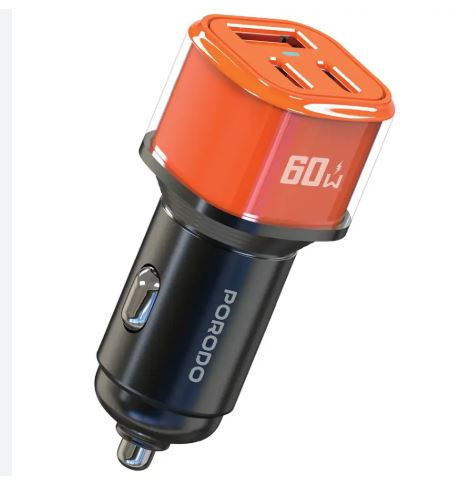 Car Charger USB-A & Type – C x 2 60W – ORANGE#PDCCR60WOG
