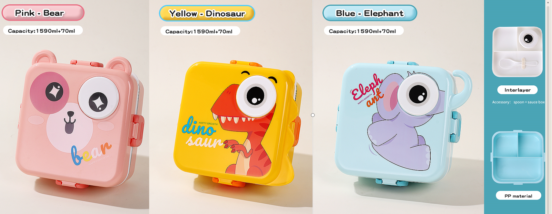Cartoon Dinosaur Square Compartment Bento Box / Mixed 1590Ml