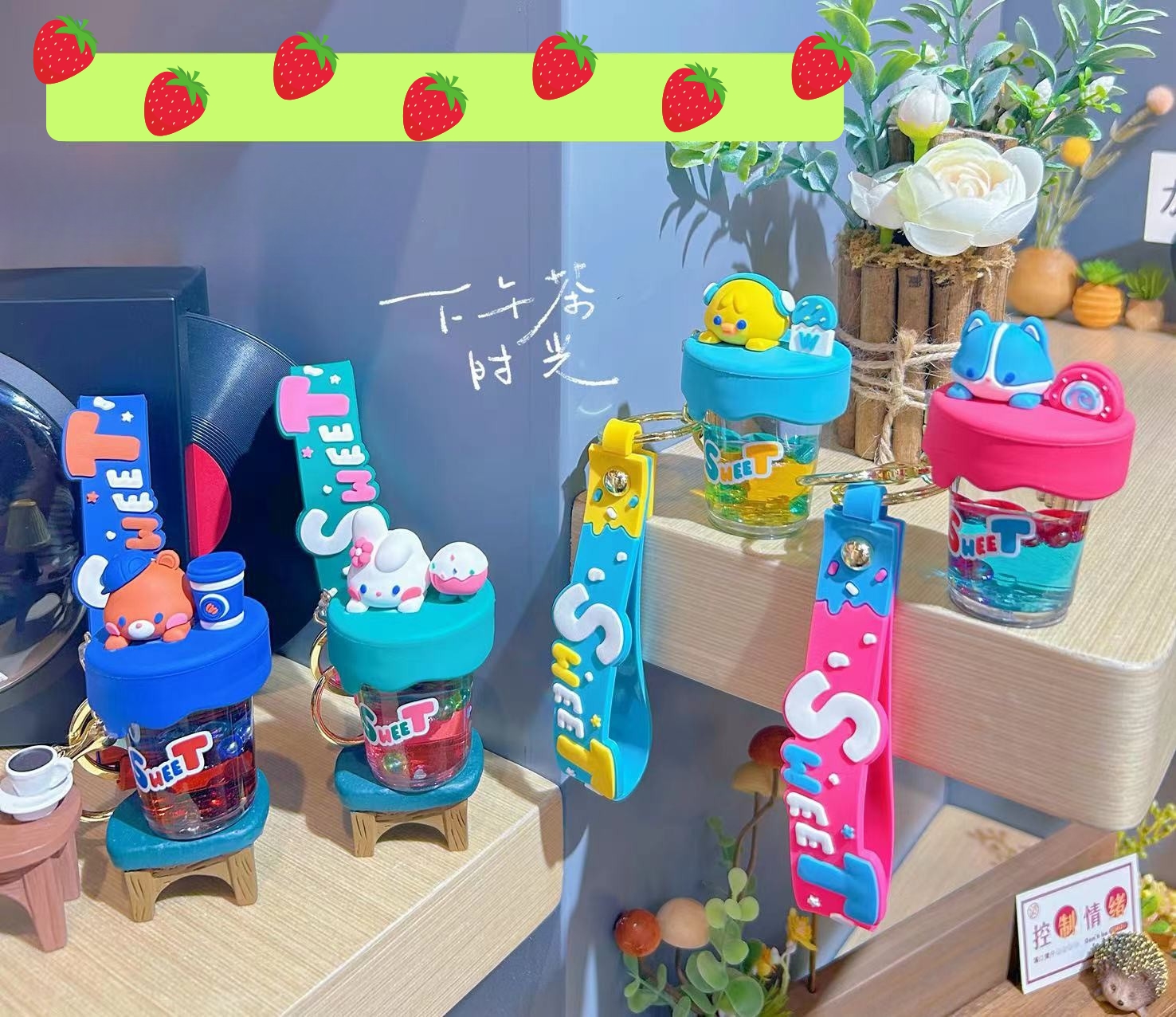 Cartoon Food-Themed Cup Keychain With Hand Strap Assorted Designs