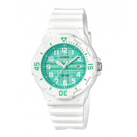 Casio Glu Watch Analog Wht Case Green Dial Wht Resin Strap#LRW-200H-3CVDF