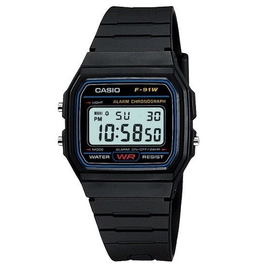 Casio Glu Watch Digital Black Case Black Bluee Panel Cover Black Resin Strap#F-91W-1DG