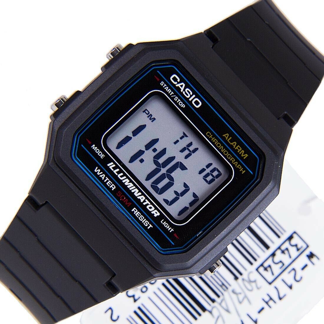 Casio Glu Watch Digital Black Case Black Panel Cover Black Resin Strap#W-217H-1AVDF