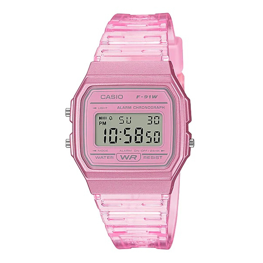 Casio Glu Watch Digital Pink Case Pink Panel Cover Semi-Transp Pink Resin Strap#F-91WS-4DF