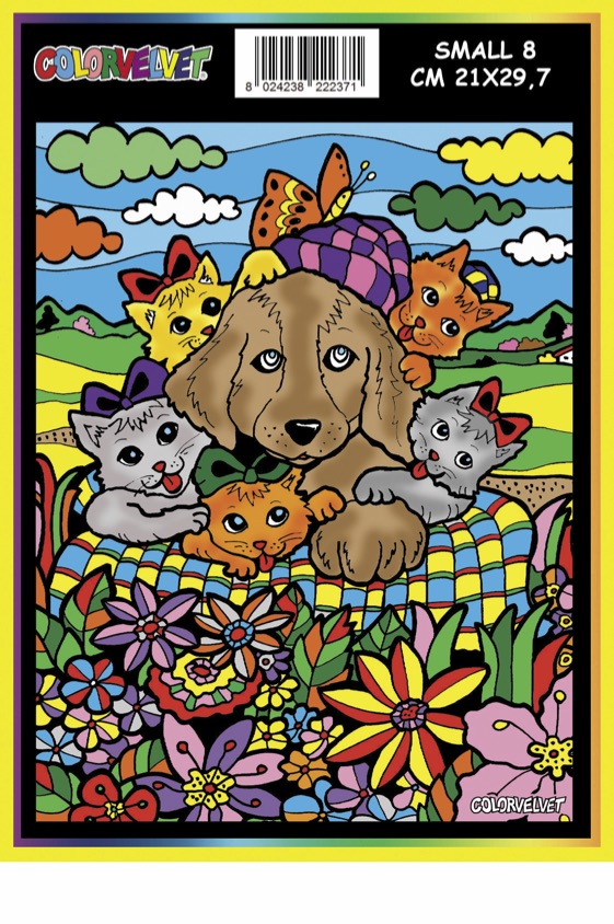 Coloring Velvet Small Picture A4 (Dog & Kitten) W/Coloring Pens #Sp8