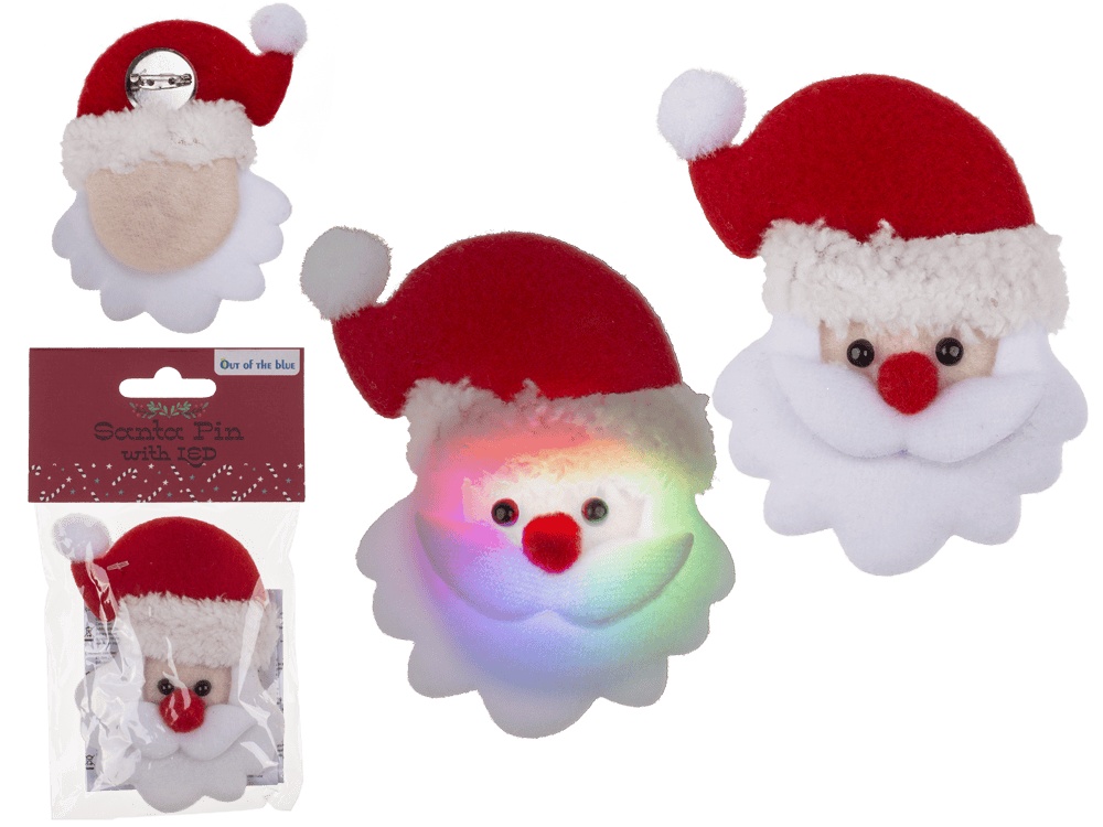 Fabric Santa pin with LED incl. batteries, ca. 11, 5 x 8 cm, in polybag with header card#960180