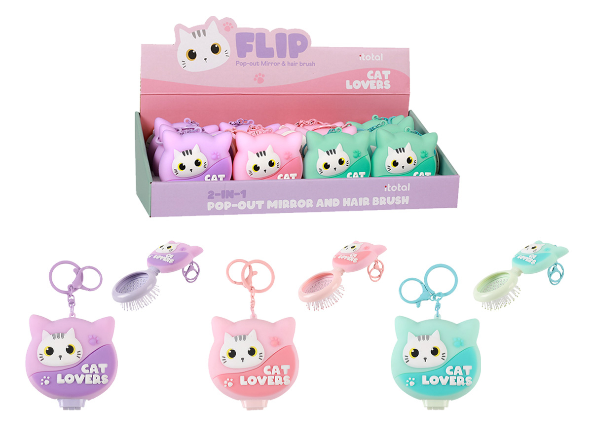 Foldable Mirror And Comb Set Cat Design Assorted colors#Xl2928
