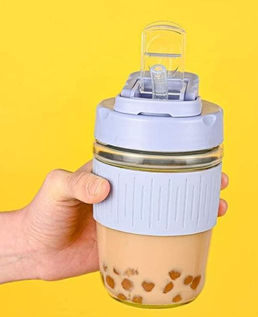 Glass Coffee Cup W/ Straw Purple #Cpnj07-02 /Purple