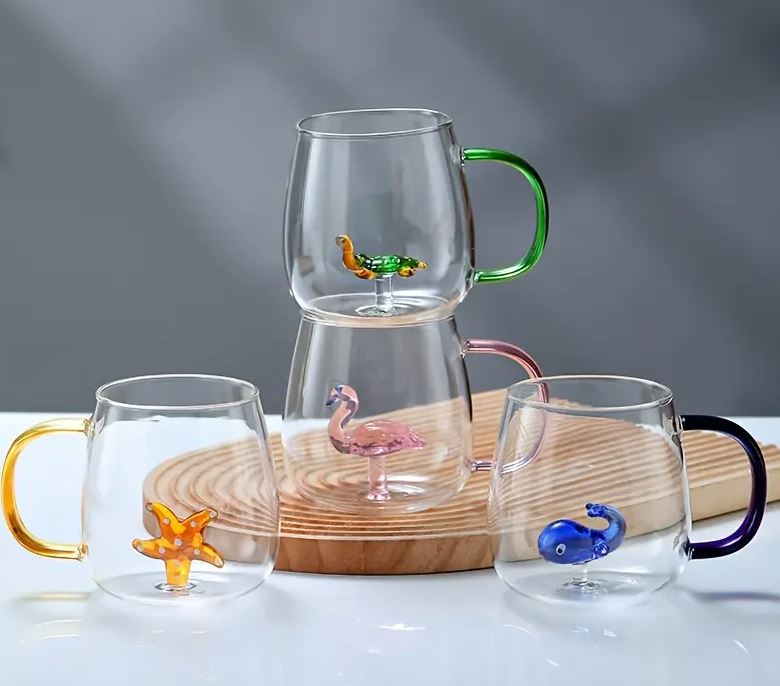 Glass Coffee Cup With Color Handle#MLK041616