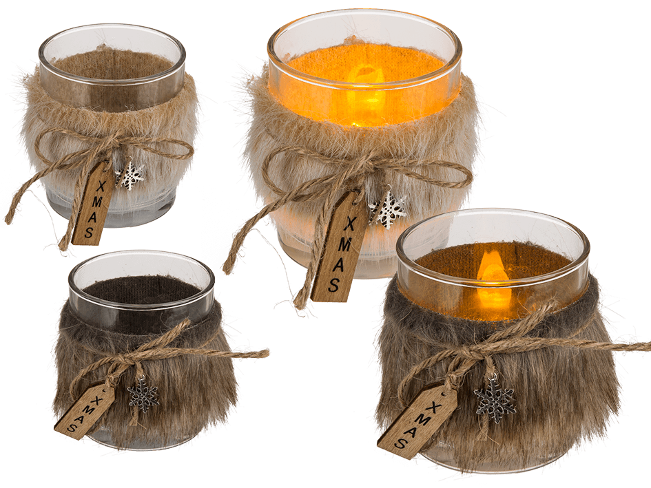 Glass Tealight Holder With Fabric Decoration 7X8Cm 2 Colors#960327