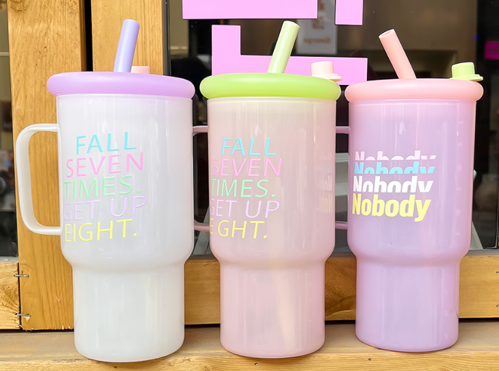 Glass Tumbler 900Ml Cream Handle Cup With Straw Assorted Colors