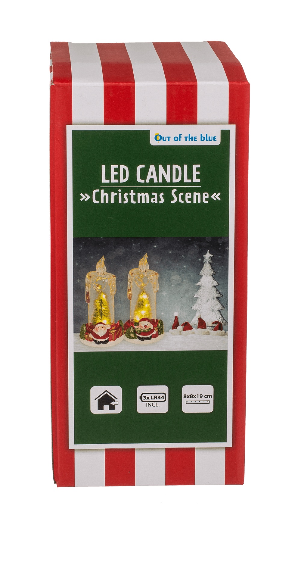 LED candle with Christmas scene, acrylic/dolomite, 8x8x19cm, incl. 3xLR44 button cells#160065