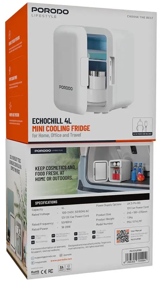 Compact And Stylish 4L Mini Fridge Designed For Drinks, Snacks, And Skincare. Energy-efficient, Whisper-quiet, And Suitable For Home, Office, Or Car Use With AC And 12V Power Options.