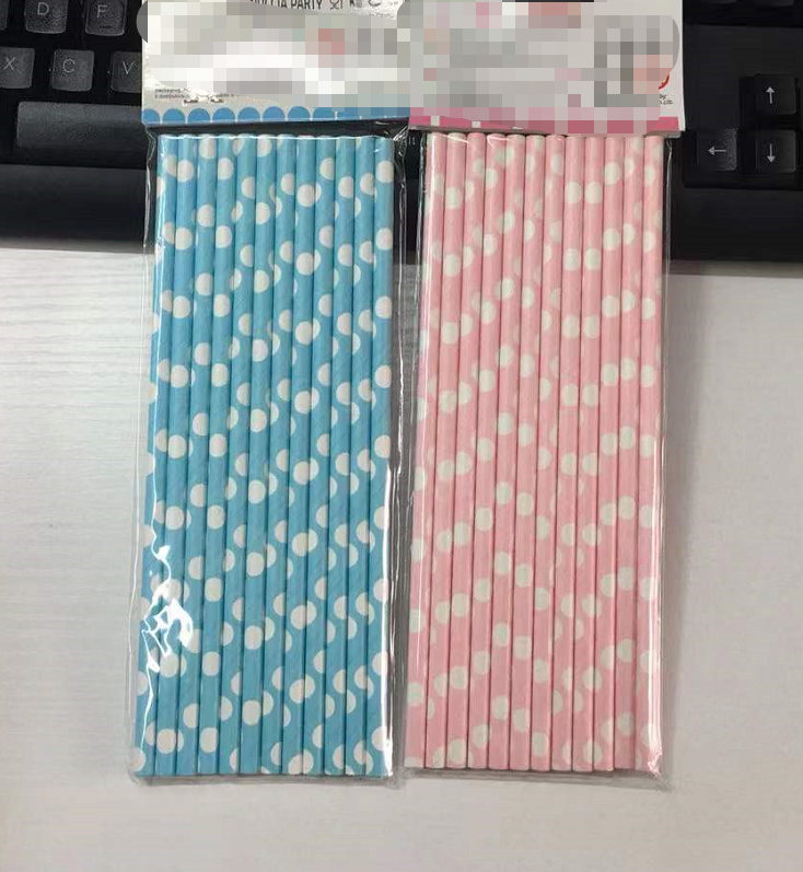 Party Dot Straws Set Blue 12/Pk