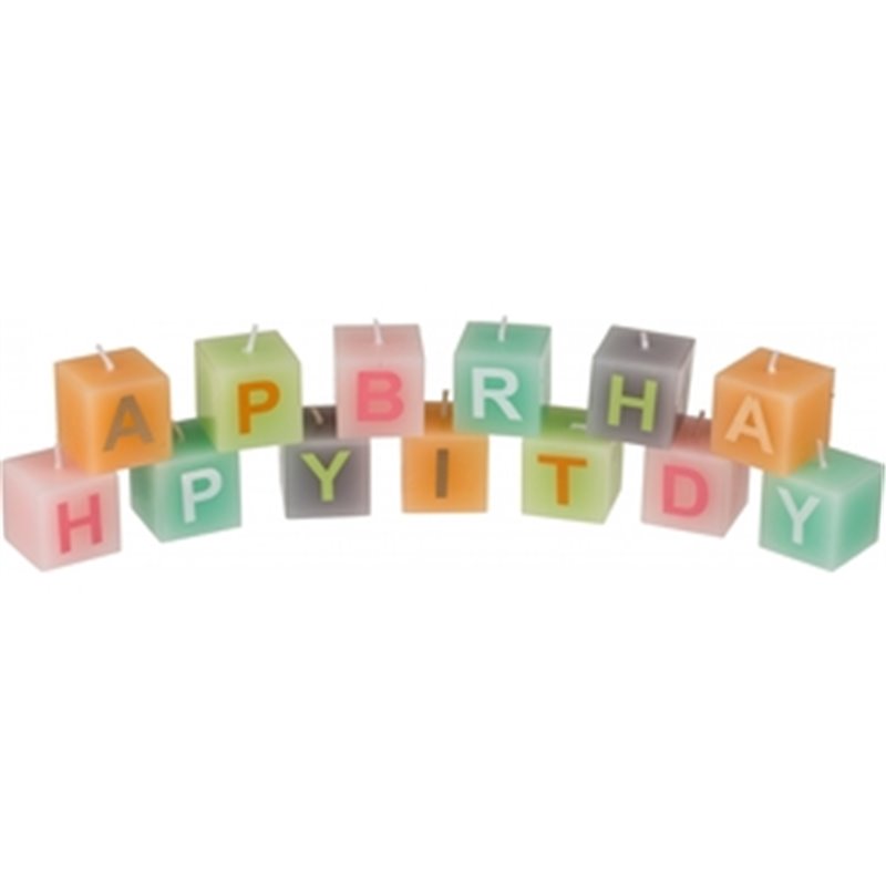 Pastel Square Candles “Happy Birthday”13Pcs Ass #181008