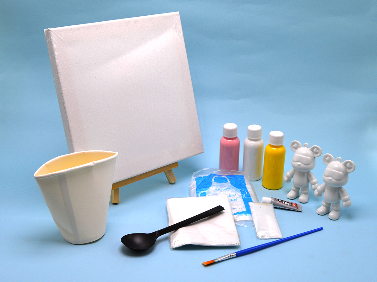 Plastic Bear W/Canvas 20*20cm And Chevalet + Painting Accessories #24BS822