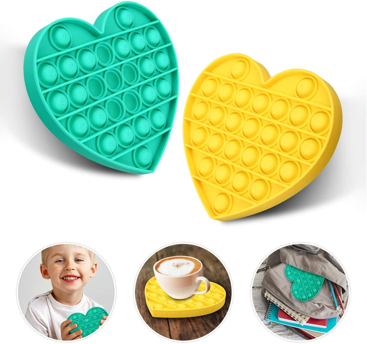 Pop It Fidget Toy Heart Shape Green&Yellow #Mlk-Ppif-L