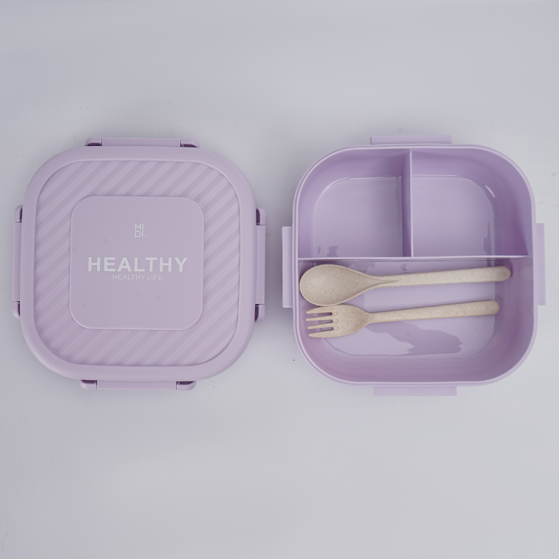 Square Wavy Three-Grid Bento Box/Mixed 1300Ml