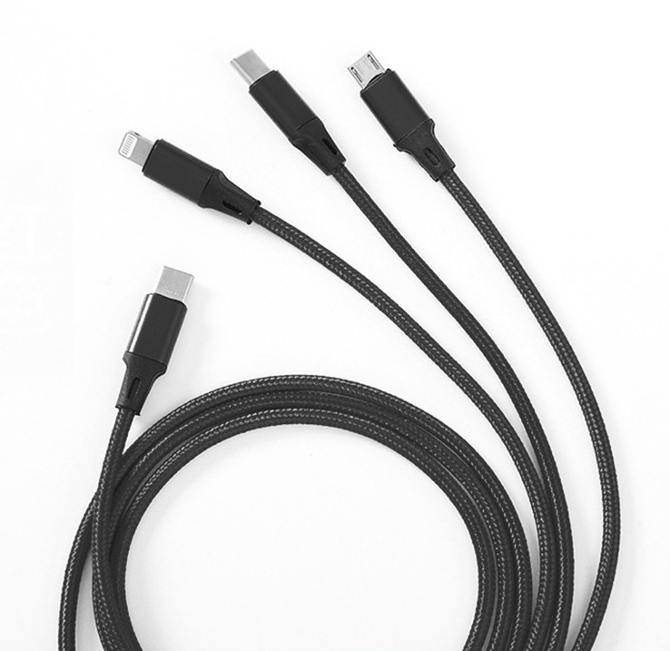 Usb Type C Cable 3In1 Micro-Usb Type-C Lightning 1.5A 1M Black