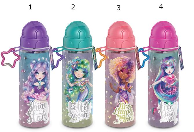 Water Bottle With Straw Assorted Colors &Mermaids #11433